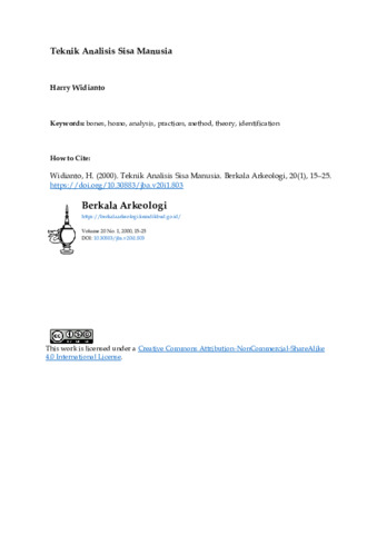 Harry, Widianto (2000) Teknik analisis sisa manusia. Berkala Arkeologi, 20 (1). pp. 15-25. ISSN 0216 - 1419