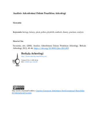 Siswanto, Siswanto (2000) Analisis arkeobotani dalam penelitian arkeologi. Berkala Arkeologi, 20 (1). pp. 40-46. ISSN 0216 - 1419