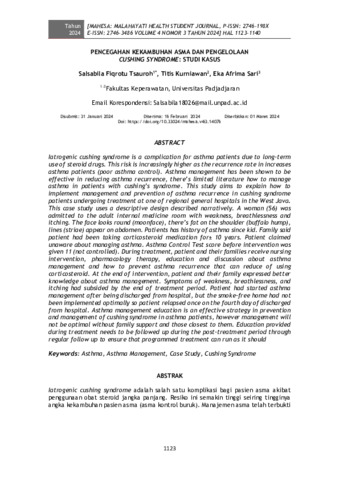 Salsabila, Fiqrotu Tsauroh and Titis, Kurniawan and Eka, Afrima Sari (2024) Pencegahan kekambuhan asma dan pengelolaan cushing syndrome: Studi kasus. MAHESA: Malahayati Health Student Journal, 4 (3): 30. pp. 1123-1140. ISSN 2746-198X