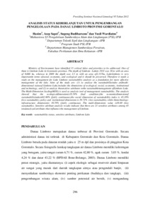 | Uncontrolled Keywords: | sustainability status, sensitive attributes, Limboto Lake |