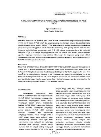 ANALISIS PENYANGGA PERISAI BIOLOGIS IN-PILE LOOP.Dalam rangka melengkapi laporan