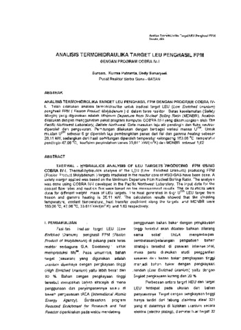 ANALISIS TERMOHIDROLIKA TARGET LEU PENGHASIL FPM DENGAN PROGRAM COBRA IVI.