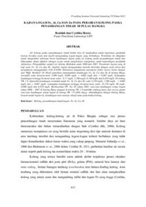 Rosidah, Rosidah and Cynthia, Henny (2012) Kajian logam Fe, Al, Cu dan Zn pada perairan kolong paska penambangan timah di Pulau Bangka. In: Prosiding Seminar Nasional Limnologi VI, 16 Juli 2012, IPB International Convention Center.