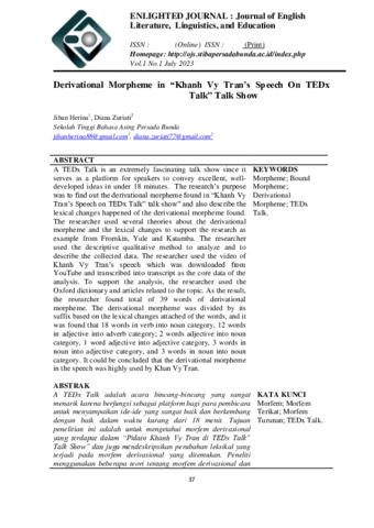 Jihan, Herina and Diana, Zuriati (2023) Derivational morpheme in "Khanh Vy Tran’s speech on TEDx Talk" talk show. Enlighted Journal: Journal of English Literature, Linguistics, and Education, 1 (1): 3. pp. 37-54. ISSN 3025-2377