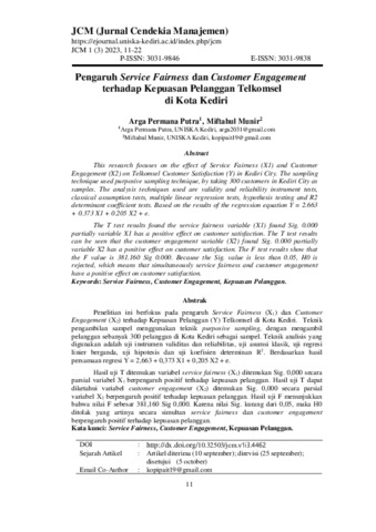 Arga, Permana Putra and Miftahul, Munir (2023) Pengaruh service fairness dan customer engagement terhadap kepuasan pelanggan Telkomsel di Kota Kediri. Jurnal Cendekia Manajemen, 1 (3): 2. pp. 11-22. ISSN 3031-9846