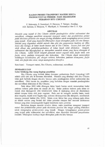 Fachmijany, Sulawesty and Senny, Sunanisari and Eko, Harsono and Tuahta, Tarigan and Awalina, Satya and Ari, Budi Santoso and Endang, Mulyana and Yayah, Mardiati and Sulung, Nomosatryo and Guruh, Satria Ajie (2005) Kajian proses transport materi serta produktivitas primer pada ekosistem perairan Situ Cibuntu. Technical Report. Pusat Penelitian Limnologi, Bogor.