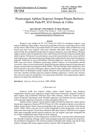 Agus, Suhendi and Irfan, Fathoni and M., Rizqi Maulana (2024) Perancangan aplikasi koperasi simpan pinjam berbasis mobile pada PT. JCO Donuts & Coffee. Journal Information & Computer, 2 (1): 1. pp. 1-8. ISSN 3031-2779