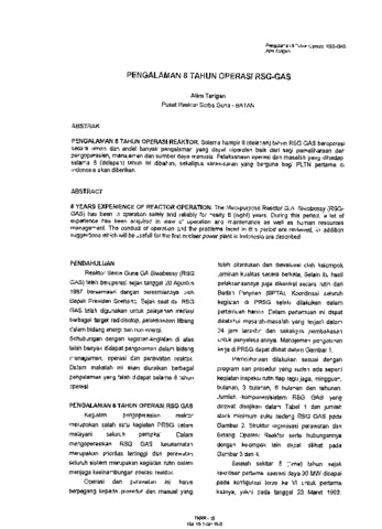 Tarigan, Alim (1995) PENGALAMAN 8 TAHUN OPERASI RSG-GAS. Prosiding Seminarke-3 Teknologi dan Keselamatan PLTN serta Fasilitas NUklir. ISSN 0854-2910