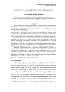 Water resources conservation is increasingly in demand in order to help sustainable agricultural and industrial development, to sustain incomes and wealth in rural areas, to alleviate poverty among rural people, and to contribute to the sustainability of natural resources and the environment. Forestry law (No. 41/1999) is mandating to increase carrying capacity of watershed in order to improve the welfare of society. It means watershed management approach should be applied and conservation measures should be carried out, as amatter of fact that land, water, minerals and biomass resources are currently under tremendous pressure in the context of highly competing and often conflicting demands of an ever expanding population. Watershed approach has been the single most important landmark in the direction of conserving water resource and bringing in visible benefits in rural areas and attracting people’s participation in development programmes. The programmes under watershed approach broadly fall into community empowerment, soil and water conservation and improvement in the vegetative cover, through such as community based forest management, degraded forest and land rehabilitation, national movement on Forest and Land Rehabilitation, programme on One Man One Tree, and One Billion Trees for the World. Integrated watershed management concept has been launched and formulated in several priority watersheds, which is an iterative process of integrated decision making regarding uses and modification of lands and waters including water resources within a watershed. Development of the watershed needs better understanding about the various natural resources their relations with each other and their relations with livelihood of the stakeholders. Conservation will be successfully implemented when local people participate in the planning process and a cost sharing scheme applied.