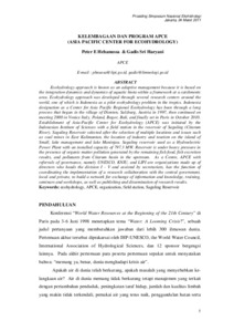 cohydrology approach is known as an adaptive management because it is based on the integration dynamics and dynamics of aquatic biota within a framework at a catchments area. Ecohydrology approach was developed through several research centers around the world, one of which is Indonesia as a pilot ecohydrology problem in the tropics. Indonesia designation as a Center for Asia Pacific Regional Ecohydrology has been through a long process that began in the village of Dienten, Salzburg, Austria in 1997, then continued on meeting 2000 in Venice Italy, Poland, Bogor, Bali, and finally set in Paris in October 2010. Establishment of Asia-Pacific Center for Ecohydrology (APCE) was initiated by the Indonesian Institute of Sciences with a field station in the reservoir of Saguling (Citarum River). Saguling Reservoir selected after the selection of multiple locations and issues such as coal mines in East Kalimantan, the location of industry and tourism on the island of Small, lake management and lake Maninjau. Saguling reservoir used as a Hydroelectric Power Plant with an installed capacity of 797.3 MW. Reservoir is under heavy pressure in the presence of organic matter pollution generated by the remaining fish food, fish excretion results, and pollutants from Citarum basin in the upstream. As a Centre, APCE with referrals of governance, namely UNESCO, KNIU, and LIPI are organizations made up of directors who heads the division I - V and assisted by secretariats, has the function of coordinating the implementation of a research collaboration with the central government, local and private, to build a network for exchange of information and knowledge, training, seminars and workshops, as well as publishing and dissemination of research results.