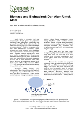 Abdul, Halim and Azmi, Alvian Gabriel and Surya, Iryana Ihsanpuro (2024) Biomass and bioinspired: dari alam untuk alam. Sustainability and Social Impact, 1 (1): 1. pp. 3-5. ISSN 3030-9727