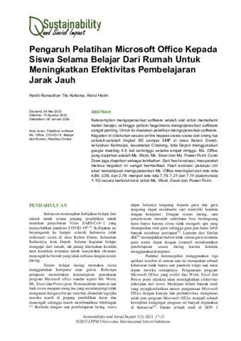 Habib, Ramadhan Tito Kottama and Abdul, Halim (2024) Pengaruh pelatihan microsoft office kepada siswa selama belajar dari rumah untuk meningkatkan efektivitas pembelajaran jarak jauh. Sustainability and Social Impact, 1 (1): 3. pp. 17-21. ISSN 3030-9727