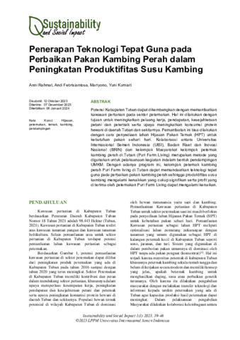 Anni, Rahmat and Andi, Febrisiantosa and Mariyono, Mariyono and Yuni, Kurniati (2024) Penerapan teknologi tepat guna pada perbaikan pakan kambing perah dalam peningkatan produktifitas susu kambing. Sustainability and Social Impact, 1 (1): 7. pp. 47-51. ISSN 3030-9727