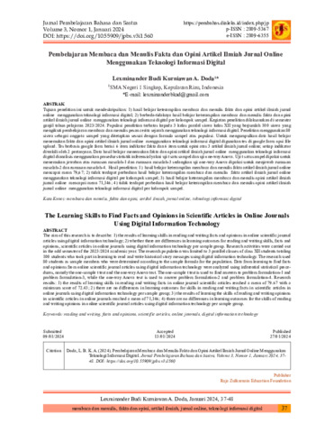 Lexminander, Budi Kurniawan A. Doda (2024) Pembelajaran membaca dan menulis fakta dan opini artikel ilmiah jurnal online menggunakan teknologi informasi digital. Jurnal Pembelajaran Bahasa dan Sastra (Jurnal Pembahas), 3 (1): 4. pp. 37-48. ISSN 2809-5367