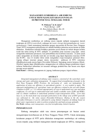 Wahyu, Widiyono and B., Lidon (2011) Managemen sumberdaya air embung untuk menunjang ketahanan pangan di Provinsi Nusa Tenggara Timur. In: Prosiding Simposium Nasional Ekohidrologi, 24 Maret 2011, Gedung Widyagraha – LIPI Jakarta.