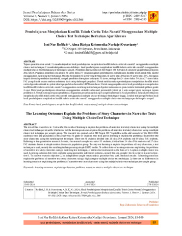 Isni, Nur Rofifah and Alma, Rizkya Krismonika Nurfajri Octavianty (2024) Pembelajaran menjelaskan konflik tokoh cerita teks naratif menggunakan multiple choice test technique berbahan ajar khusus. Jurnal Pembelajaran Bahasa dan Sastra (Jurnal Pembahas), 3 (1): 9. pp. 93-100. ISSN 2809-5367