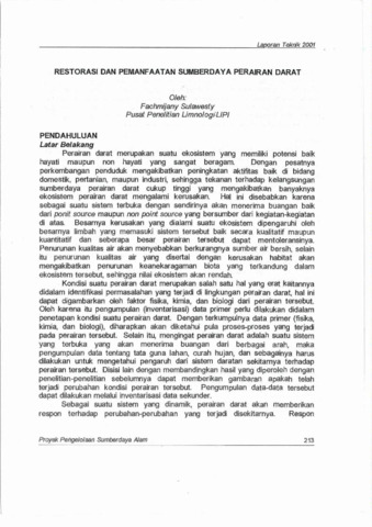 Fachmijany, Sulawesty (2001) Restorasi dan pemanfaatan sumberdaya perairan darat. Technical Report. Pusat Penelitian Limnologi, Bogor.