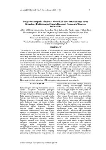 Ari Adi, Wisnu and Fauzy, Rizky and Taryana, Yana and Yusmaniar, Yusmaniar (2018) Pengaruh Komposisi Silika dari Abu Sekam Padi terhadap Daya Serap Gelombang Elektromagnetik pada Komposit Unsaturated Polyester Resins/Silika. Jurnal ILMU DASAR. pp. 7-15.
