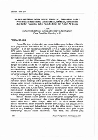Muhammad, Badjoeri and Sulung, Nomosatryo and Sugiarti, Sugiarti (2001) Kajian bakteriologi di Danau Maninjau, Sumatera Barat profil bakteri heterotrofik, ammonifikasi, nitrifikasi, denitrifikasi dan bakteri pereduksi sulfat pada sedimen dan kolom air danau. Technical Report. Pusat Penelitian Limnologi, Bogor.