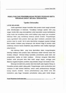 Tjandra, Chrismadha (2001) Penelitian dan pengembangan proses produksi biota perairan darat secara terkontrol. Technical Report. Pusat Penelitian Limnologi, Bogor.