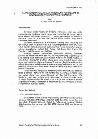 Lukman, Lukman and Widi, Riyanto (2002) Karakteristik kualitas air pendukung petambakan di kawasan Sindang Kabupaten Indramayu. Technical Report. Pusat Penelitian Limnologi, Bogor.