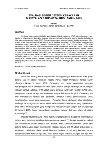 Muradi, Muradi (2015) Evaluasi Sistem Deteksi Kebakaran di Instalasi Radiometalurgi Tahun 2015. Prosiding Seminar Hasil-hasil Penelitian EBN Tahun 2015, - (-). pp. 461-466. ISSN 0854-5561