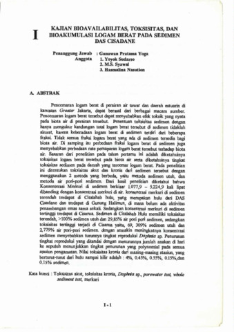 Pencemaran logam berat di perairan air tawar dan daerah estuarin di kawasan Greater Jakarta, dapat berasal dari berbagai macam sumber. Pencemaran logam berat tersebut dapat menyebabkan efek toksik yang nyata pada biota air di perairan tersebut. Penentuan toksisitas sedimen dengan hanya mengukur kandungan total logam berat tersebut di sedimen tidaklah akurat, karena keberadaan logam berat di sedimen terdiri dari beberapa fraksi. Tidak semua fraksi logam berat yang ada di sedimen tersedia bagi biota air. Di samping itu perbedaan fraksi logam berat di sedimen juga menyebabkan perbedaan rute pemaparan logam berat tersebut terhadap biota air. Sasaran dari penelitian pada tahun pertama ini adalah diketahuinya toksisitas logam berat tersebut pada biota air serta diketahuinya tingkat toksisitas sedimen pada daerah yang tercemar logam berat. Pada penelitian ini ditentukan toksisitas akut dan kronis dari sedimen tersebut dengan menggunakan 2 metoda yang berbeda, yaitu metoda sedimen utuh, dan metoda air pori-pori sedimen. Dari basil penelitian diketahui bahwa Konsenterasi Merkuri di sedimen berkisar 1.077,9 - 5.224,9 kali lipat dibanding dengan konsentrasi merkuri di air. konsentrasi merkuri di sedimen terendah terdapat di Citalahab hulu, yang merupakan hulu dari DAS Cisadane dan terdapat di Gunung Halimun, di mana belum ada aktivitas penambangan emas sama sekali. Sedangkan konsentrasi merkuri di sedimen tertinggi terdapat di Cisarua. Sedimen di Citalahab Hulu memiliki toksisitas terendah, >100% sedimen utuh dan 29,85% air pori pori sedimen, sedangkan toksisitas tertinggi terjadi di Cisarua yaitu, 69, 309% sedimen utuh dan 2, 779% air pori-pori sedimen. dengan semakin meningkatnya konsentrasi sedimen menyebabkan turunnya tingkat reproduksi Daphnia sp. Penurunan tingkat reproduksi yang ditandai dengan menurunnya jumlah anakan di hari ke sepuluh menunjukkan tingkat penurunan yang polynomial pada semua stasiun pengamatan. Nilai toksisitas kronis dari masing-masing stasiun, yang berturut-turut dari hulu sampai hilir adalah : 4%, 0.45%, 0.55%, 0.15%,dan 0.15% sedimen.