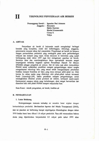 | Uncontrolled Keywords: | teknik pengolahan, air bersih, kualitas air |