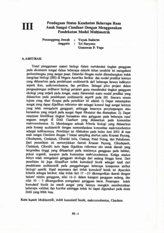 | Uncontrolled Keywords: | Multimetrik, indek kumulatif biotik, makrozoobentos, Cisadane |