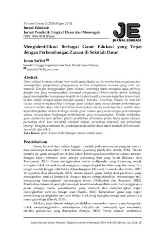 Intan, Safitri (2024) Mengidentifikasi berbagai game edukasi yang tepat dengan perkembangan zaman di sekolah dasar. Jurnal Edukasi: Jurnal Pendidik Tingkat Dasar dan Menengah, 1 (2): 4. pp. 25-32. ISSN 3046-5834