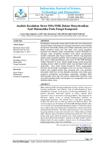 Asrori, Septa Sugianto and Lutfi, Cahya Kurniawan and Nila, Alfi Rosyidah and Indah, Wahyuni (2023) Analisis kesalahan siswa SMA/SMK dalam menyelesaikan soal matematika pada fungsi komposisi. Indonesian Journal of Science, Technology and Humanities, 1 (1): 4. pp. 30-38. ISSN 2988-7976