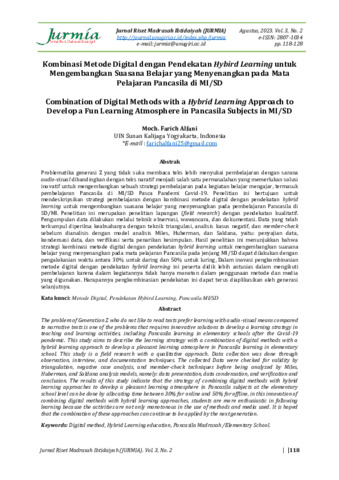 Moch. Farich, Alfani (2023) Kombinasi metode digital dengan pendekatan hybird learning untuk mengembangkan suasana belajar yang menyenangkan pada mata pelajaran Pancasila di MI/SD. Jurnal Riset Madrasah Ibtidaiyah, 3 (2): 3. pp. 118-128. ISSN 2807-1034