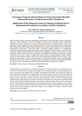 Tiara, Yuliarsih and Yhasinta, Agustyarini (2023) Penerapan program literasi numerasi pada pemecahan masalah matematika kelas V studi kasus di MIN 2 Mojokerto. Jurnal Riset Madrasah Ibtidaiyah, 3 (2): 5. pp. 145-156. ISSN 2807-1034