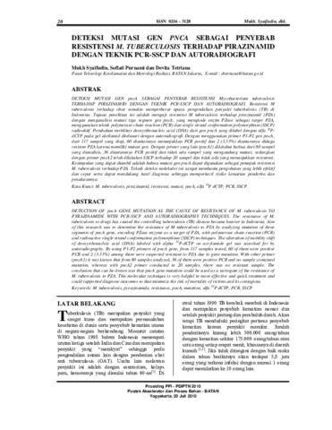 Indonesia. Tujuan penelitian ini adalah menguji resistensi M tuberculosis terhadap pirazinamid (PZA)
