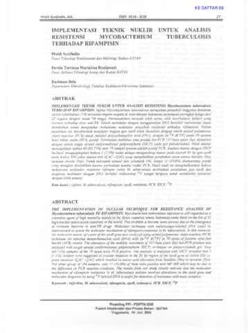 Mukh, Syaifudin and Devita, Tetriana (2006) IMPLEMENTASI TEKNIK NUKLIR UNTUK ANALISIS RESISTENSI MYCOBACTERIUM TUBERCULOSIS TERHADAP RIFAMPISIN. Prosiding PPI-PDIPTN 2006. pp. 27-34.