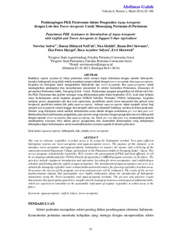 Novriza, Sativa and Hanny, Hidayati Nafi’ah and Nisa, Hakiki and Rama, Dwi Siswanto and Eka, Putra Hayqal and Resa, Asyahro Sofyan and Ervi, Herawati (2024) Pendampingan PKK Pataruman dalam pengenalan aqua-aeroponic dengan lele dan tower-aeroponic untuk menunjang pertanian di perkotaan. Abdimas Galuh: Jurnal Pengabdian Kepada Masyarakat, 6 (1): 11. pp. 92-100. ISSN 2716-0211