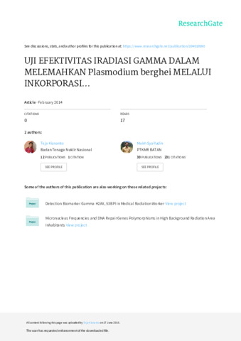 Teja, Kisnanto and Mukh, Syaifudin (2013) UJI EFEKTIVITAS IRADIASI GAMMA DALAM MELEMAHKAN Plasmodium berghei MELALUI INKORPORASI H-3 HIPOKSANTIN. Prosiding PPI-FPTN, VIII. pp. 36-42. ISSN 1978-9971