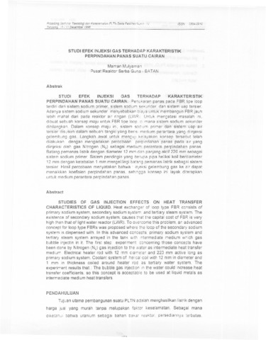 Maman Mulyaman, MM (1996) STUDI EFEK INJEKSI GAS TERHADAP KARAKTERISTIK PERPINDAHAN PANAS SUATU CAIRAN. PROSIDING SEMINAR TEKNOLOGI DAN KESELAMATAN PLTN SERTA FASILITAS NUKLIR IV. ISSN 0854-2810