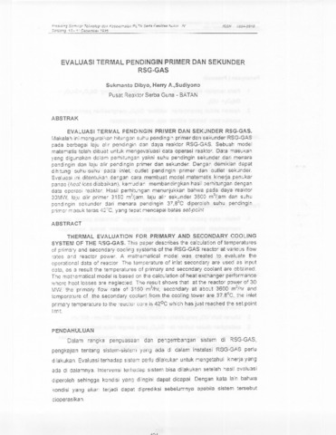 EVALUASI TERMAL PENDINGIN PRIMER DAN SEKUNDER RSG-GAS.