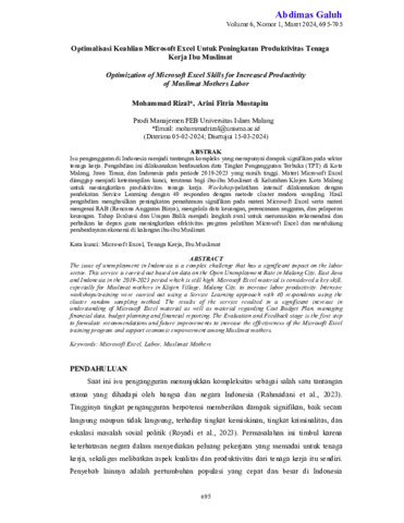 Mohammad, Rizal and Arini, Fitria Mustapita (2024) Optimalisasi keahlian microsoft excel untuk peningkatan produktivitas tenaga kerja ibu muslimat. Abdimas Galuh: Jurnal Pengabdian Kepada Masyarakat, 6 (1): 76. pp. 695-705. ISSN 2716-0211