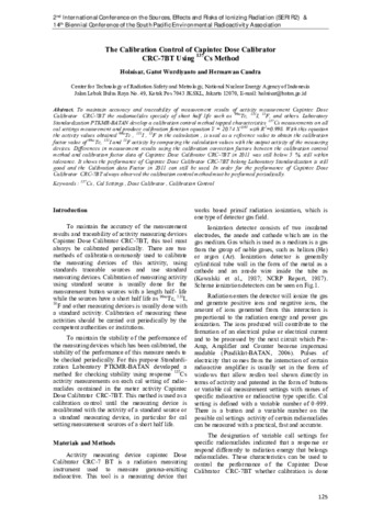 devices. Differences in measurement results using the calibration correction factors between the calibration control method and calibration factor data of Capintec Dose Calibrator CRC-7BT in 2011 was still below 5 %, still within tolerance. It shows the performance of Capintec Dose Calibrator CRC-7BT belong Laboratory Standardization is still good and the Calibration data Factor in 2011 can still be used. In order for the performance of Capintec Dose Calibrator CRC-7BT always observed the calibration control method must be performed periodically.