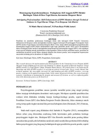 Ni, Made Murni Ariastuti and Ni, Putu Bayu Widhi Antari (2024) Menyongsong keprofesionalitasan: Peningkatan skill anggota KPPS melalui bimbingan teknis di Desa Tegal Harum, Kecamatan Denpasar Barat. Abdimas Galuh: Jurnal Pengabdian Kepada Masyarakat, 6 (1): 98. pp. 892-900. ISSN 2716-0211