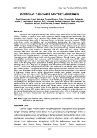 Kata kunci: finger print, forensik nuklir, database, perpustakaan nuklir nasional, nuclear incident,