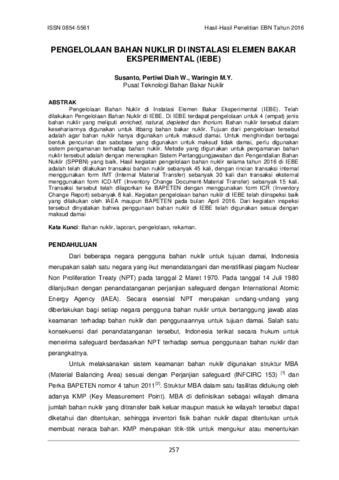 Nuklir (SPPBN) yang baik. Hasil kegiatan pengelolaan bahan nuklir selama tahun 2016 di IEBE