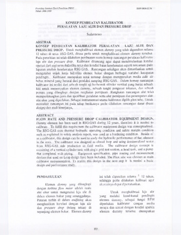 Sudarmono, Sudarmono (1999) KONSEP PEMBUATAN KALIBRATOR PERALA TAN LAJU ALIR DAN PRESSURE DROP. PROSIDING SEMINAR HASIL PENELITIAN PRSG. ISSN 0854-5278