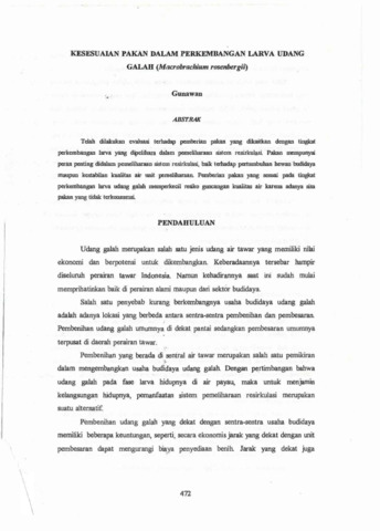Gunawan, Gunawan (1998) Kesesuaian pakan dalam perkembangan larva udang galah (Macrobrachium rosenbergii). Technical Report. Pusat Penelitian Limnologi, Bogor.