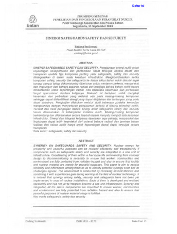 . SINERGI SAFEGUARDS SAFETY DAN SECURITY. Penggunaan energi nuklir untuk kepentingan kesejahteraan dan perdamaian dapat terwujud secara efektif dan