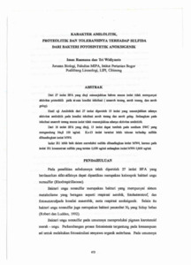 Dari 27 isolat BFA yang diuji menunjukkan bahwa semua isolat tidak mempunyaiaktivitas proteolitik pada semua kondisi inkubasi (anaerob terang, aerob terang, dan aerob gelap).Hasil uji Amilolitik dari 27 isolat diperoleh 15 isolat yang menunjukkan adanya aktivitas amilolitik pada kondisi inkubasi aerob terang dan aerob gelap. Sedangkan pada inkubasi anaerob terang semua isolat tidak menunjukkan adanya aktivitas amilolitik.Dari 18 isolat BFA yang diuji, 13 isolat dapat tumbuh pada medium SWC yangmengandung Na,S 100 ug/ml. Ke-13 isolat tersebut lebih toleran terhadap sulfida dibandingkan isolat MW4.Isolat IR! lebih baik dalam mereduksi sulfida dibandingkan isolat MW4, karena pada isolat !RI konsentrasi sulfida yang tersisa 0,650 ug/ml sedangkan isolat MW4 0,800 ug/ml.