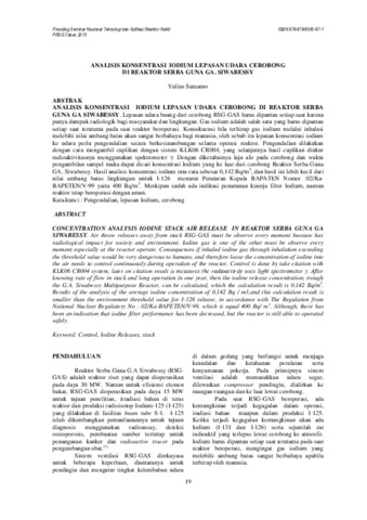 ANALISIS KONSENTRASI IODIUM LEPASAN UDARA CEROBONG DI REAKTOR SERBA GUNA GA SIWABESSY. Lepasan udara buang dari cerobong RSG-GAS harus dipantau setiap saat karena punya dampak radiologik bagi masyarakat dan lingkungan. Gas iodium adalah salah satu yang harus dipantau setiap saat terutama pada saat reaktor beroperasi. Konsekuensi bila terhirup gas iodium melalui inhalasi melebihi nilai ambang batas akan sangat berbahaya bagi manusia, oleh sebab itu lepasan konsentrasi iodium ke udara perlu pengendalian secara berkesinambungan selama operasi reaktor. Pengendalian dilakukan dengan cara mengambil cuplikan dengan sistem KLK06 CR004, yang selanjutnya hasil cuplikan diukur radioaktivitasnya menggunakan spektrometer γ. Dengan diketahuinya laju alir pada cerobong dan waktu pengambilan sampel maka dapat dicari konsentrasi Iodium yang ke luar dari cerobong Reaktor Serba Guna GA. Siwabessy. Hasil analisis konsentrasi iodium rata-rata sebesar 0,142 Bq/m3, dan hasil ini lebih kecil dari nilai ambang batas lingkungan untuk I-126 menurut Peraturan Kepala BAPATEN Nomor :02/Ka-BAPETEN/V-99 yaitu 400 Bq/m3. Meskipun sudah ada indikasi penurunan kinerja filter Iodium, namun reaktor tetap beroperasi dengan aman.