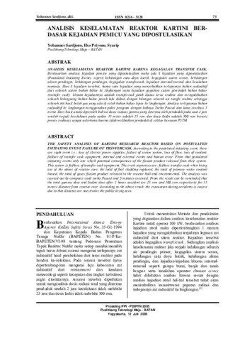 Sardjono, Yohanes and Priyono, Eko and Syarip, Syarip (2005) ANALISIS KESELAMATAN REAKTOR KARTINI BERDASAR KEJADIAN PEMICU YANG DIPOSTULASIKAN. In: PPI - PDIPTN 2005 Puslitbang Teknologi Maju, 2 Juli 2005, Yogyakarta.
